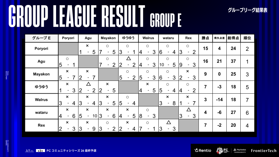 グループE ゆうゆうは5位でグループステージ敗退となった。