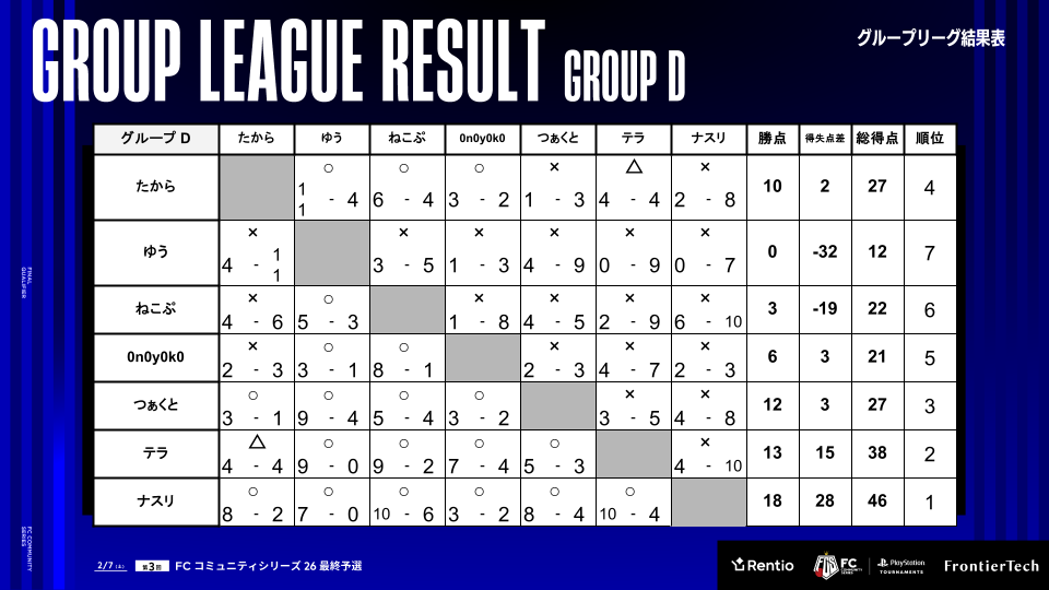 グループD テラは2位で決勝トーナメント進出。