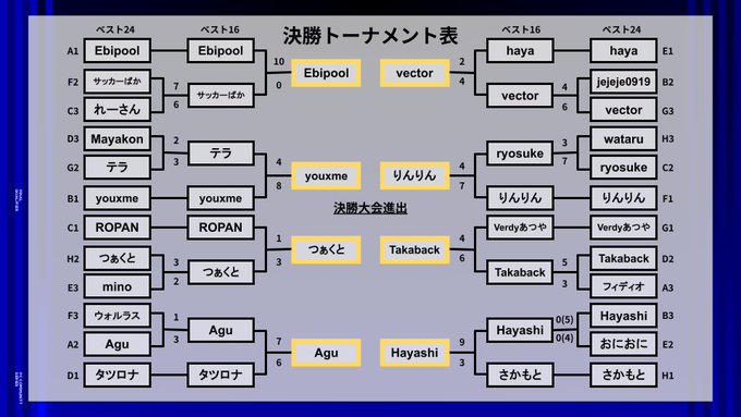 テラはグループ1位、vectorはグループ2位、ゆうゆうはグループ3位で決勝トーナメント進出!