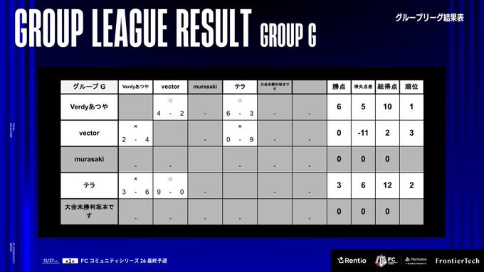 テラはグループ2位、vectorはグループ3位で決勝トーナメント進出!